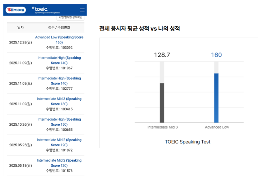 2025년 4월부터 토익스피킹 공부를 시작했지만 점수는 120점~130점대에서 계속 멈춰 있었다.